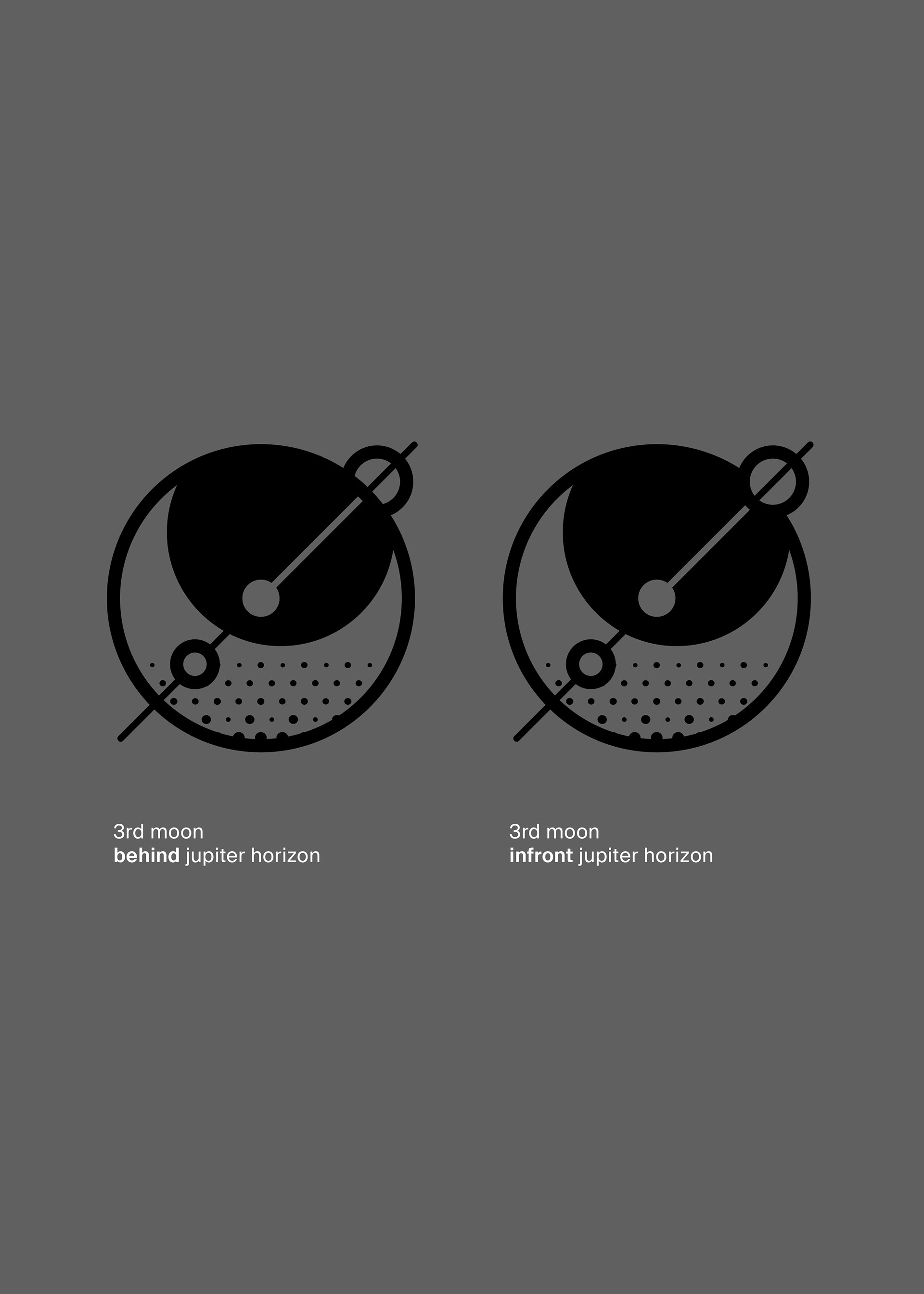 Das Design zeigt drei Monde um den Planeten, während der vierte Mond die Position des Betrachters einnimmt. Es ist bewusst reduziert, rund angelegt und nutzt nur zwei Farben mit Varianten für helle und dunkle Hintergründe.