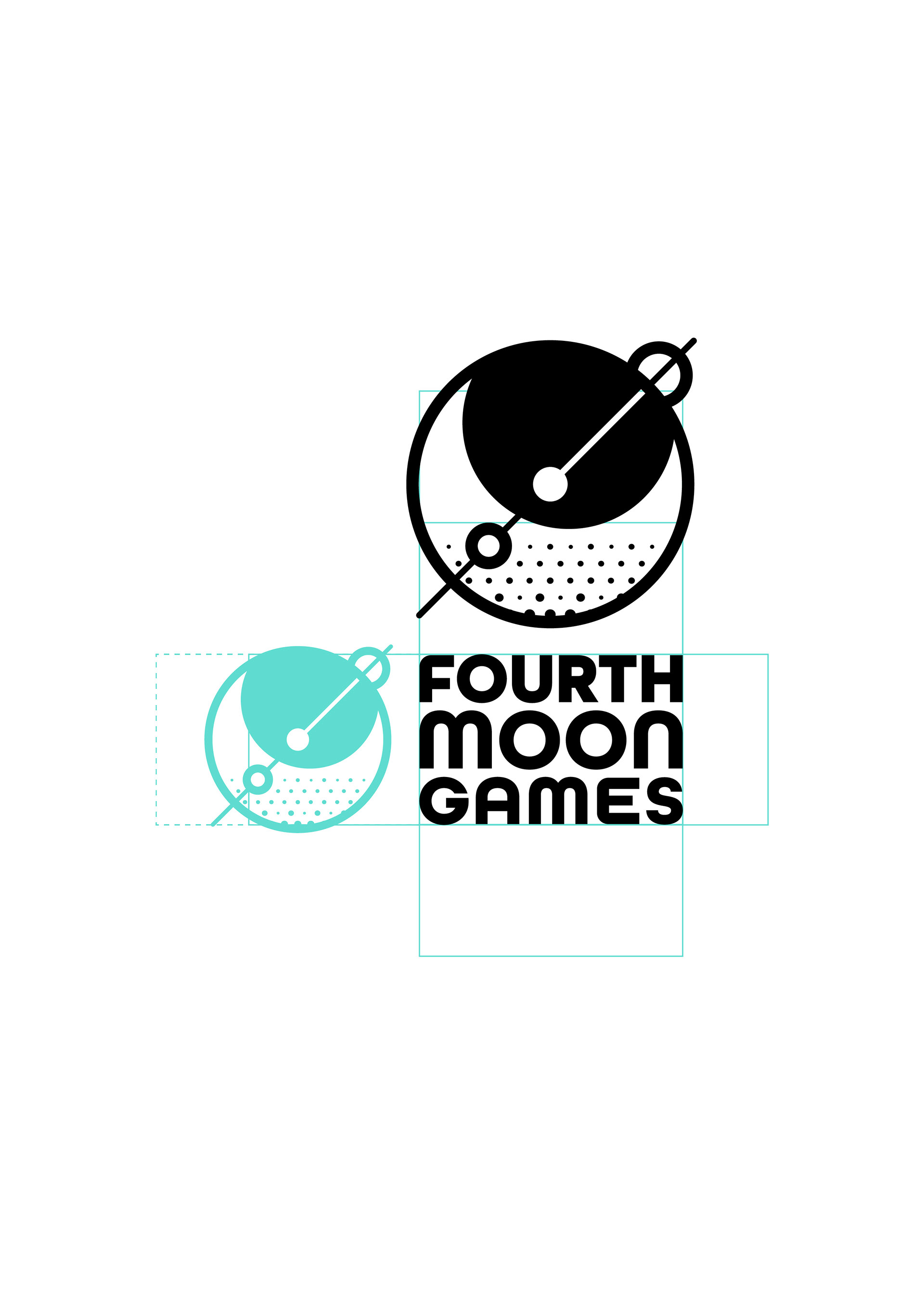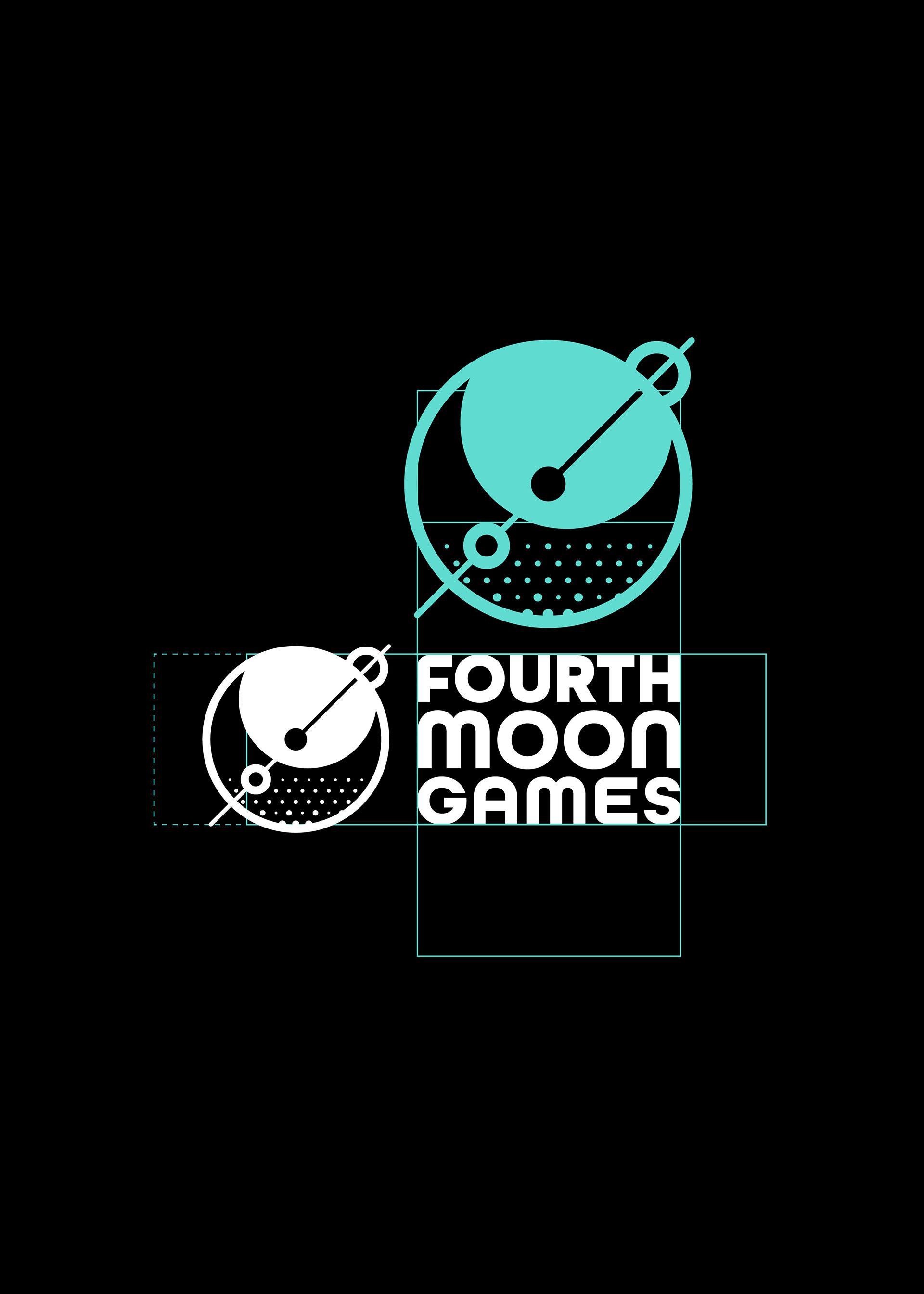 Die Typografie für FMG – „Fourth Moon Games“ wurde eigens für ernsthafte Sci-Fi-Vibes entwickelt; das Logo funktioniert sowohl mit als auch ohne Text und liegt für alle Fälle auch in einer horizontalen Version vor.